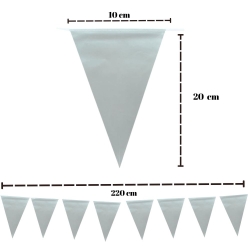 Vergiler Hariç:84,00₺Gümüş Flama ParlakPaket içerisinde 1 adet Üçgen Metalize Gümüş Bayrak Flama bulunmaktadır.Ürün Ölçüsü: 220 X20 Cm-Çift taraf baskılıdır.Parlak ve canlı renklere sahiptir.-Kaliteli parlak kağıt malzemeden elde edilmiştir.Ürün 10 adet bayrak şeklinde üçgen kesimli flamadan oluşur...