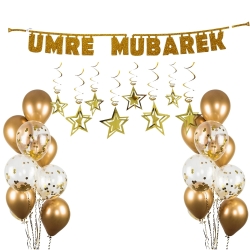 Vergiler Hariç:540,00₺Umre Mubarek Seti GoldSet İçeriği;1 Adet Umre Mubarek Yazısı Gold 1.2 Metre2 Adet Balon Standı10 Adet Krom Gold Balon6 Adet Şeffaf Balon1 Paket Gold Konfeti 10 gr1 Adet 10 lu Yıldız Sarkıt Süs Altın..