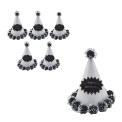 Vergiler Hariç:95,00₺6Lİ Simli Ponponlu Karton Külah Şapka Gümüş - Gümüş Kullanat Malzemeleri..