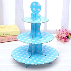 Mavi Puantiyeli Kek Standı 3 Katlı  Özel gün ve davetlerinizde misafirleriniz için hazırlamış olduğunuz nefis kapkeklerinizi sunabileceğiniz Mavi renkli karton kapkek standı.Kaliteli kalın dayanıklı kartondan imal edilmiştir.Kek ve pasta sunumlarında kullanabileceğiniz, dekoratif kek ..