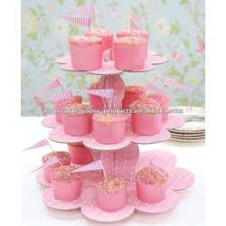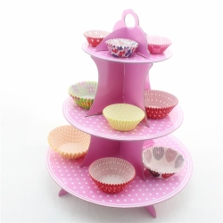 Pembe Kek Standı 3 Katlı (Beyaz Puantiyeli) - KEK STANDI..