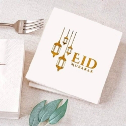 Eid Mubarek Baskılı PeçeteÜrünün paket içi sayısı: 16 adet.Ürün ebatları: 33x33 cm2 katlı kağıt peçete.Beyaz üzeri altın varak baskılı peçetiİftar vakti baskılı peçeteler ile ramazanda hazırlayacağınız iftar sofralarınızın sunumunu zenginleştirmek için kullanabilirsiniz...