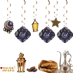 Vergiler Hariç:32,00₺-Paket içerisinde toplam 6 adet ürün bulunmaktadır.-Ürünler üzerinde "Eid Mubarak" gibi dini yazı ve motifler bulunmaktadır.-Ürünün asılı haldeki ölçüsü yukarıdan aşağı yaklaşık 70 cm gelmektedir.Ürünün form alması için kırım yerlerinden katlanarak koparmadan şekil verebilirsiniz.eid mubarak, kandil..