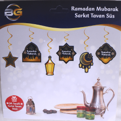 Vergiler Hariç:36,00₺-Paket içerisinde toplam 6 adet ürün bulunmaktadır.-Ürünler üzerinde "Ramadan Kareem" , kandil, yıldız, hilal gibi dini yazı ve motifler bulunmaktadır.-Ürünün asılı haldeki ölçüsü yukarıdan aşağı yaklaşık 70 cm gelmektedir.-İçerisinde bulunan kılçık yardımı ile tavana, avizeye veya istenilen yere as..