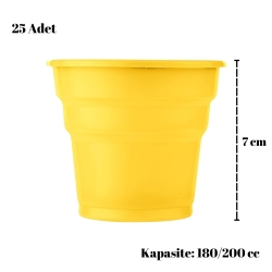 Vergiler Hariç:12,00₺Sarı Plastik Bardak (25 adet)Kutlamalarınıza canlı ve enerjik bir dokunuş katacak olan sarı renkli plastik bardak, kaliteli malzemesi ve pratik kullanımı ile özel anlarınıza neşe katar. Parlak ve sıcak sarı tonu, sofralarınıza neşeli bir hava getirirken, her türlü kutlama ve etkinliği ışıl ışıl taçl..