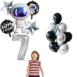 Ürün Özellikleri1 Adet Astranot Uçan Balon 1 Adet Rakam Uçan Balon  80 cm2 Adet Uzay Yuvarlak  Uçan Balon 45 cm2 Adet Gümüş Folyo Yıldız Uçan balon 45 cm4 Adet Gümüş Uçan Balon 30 cm4 Adet Siyah Uçan Balon 30 cm1 Adet Balon AğırlıkBalonları şişirmek ve teslimat zamanını belirlemek içi..